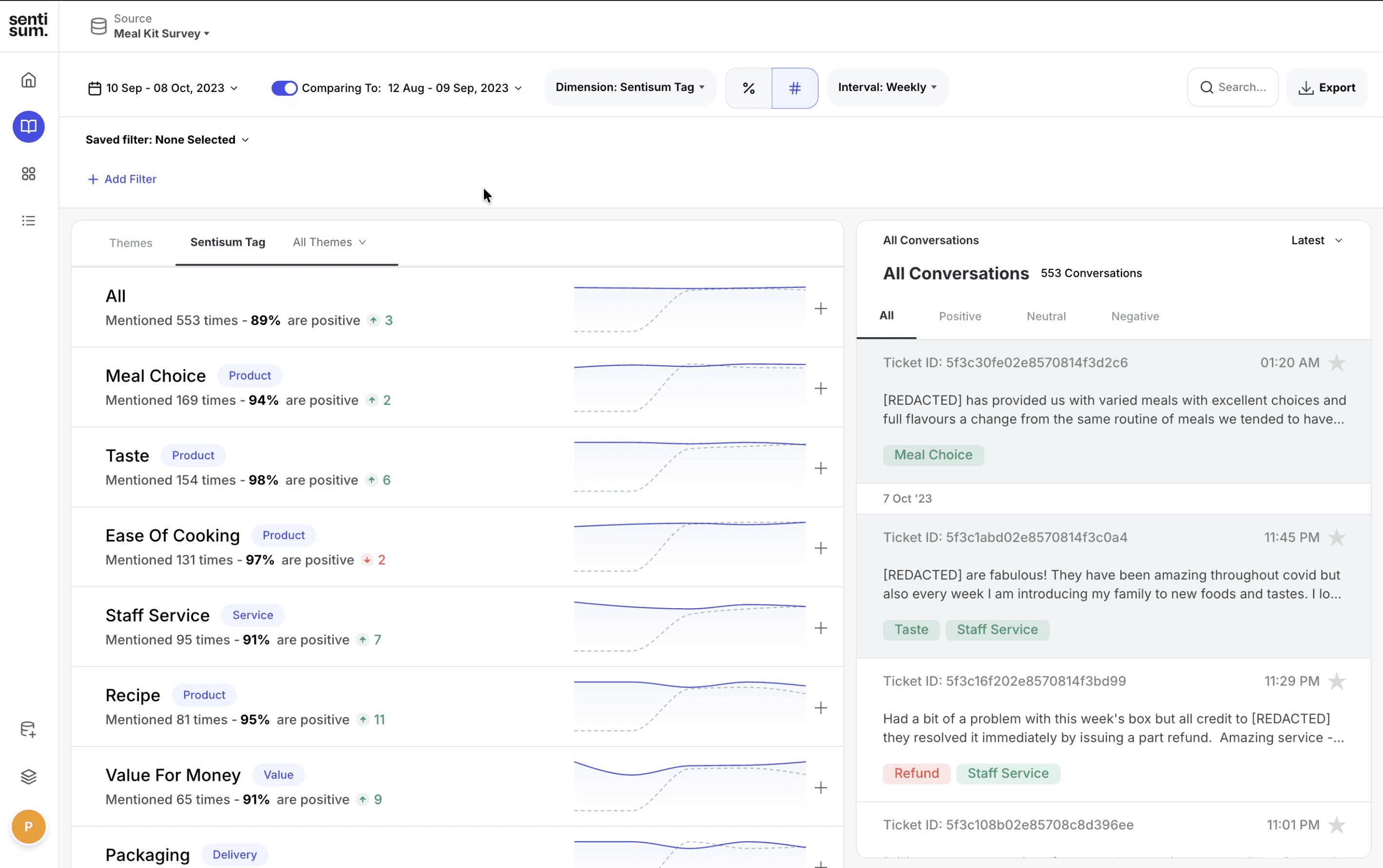 SentiSum provided standard analytics capabilities:
